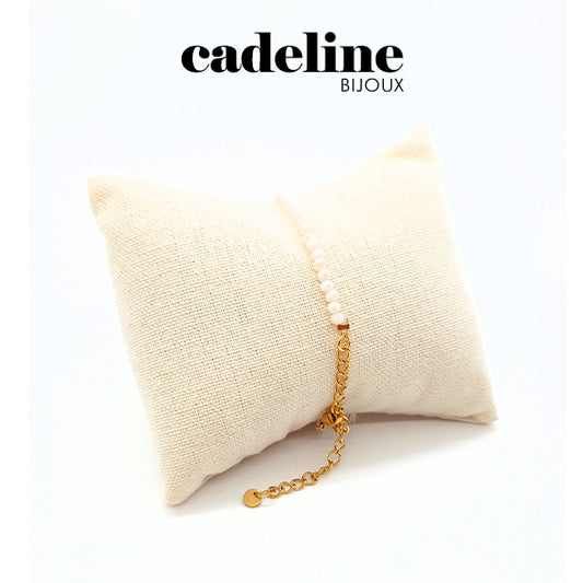 Découvrez l'élégance de nos bracelets faits main en perles de verre et acier inox doré.