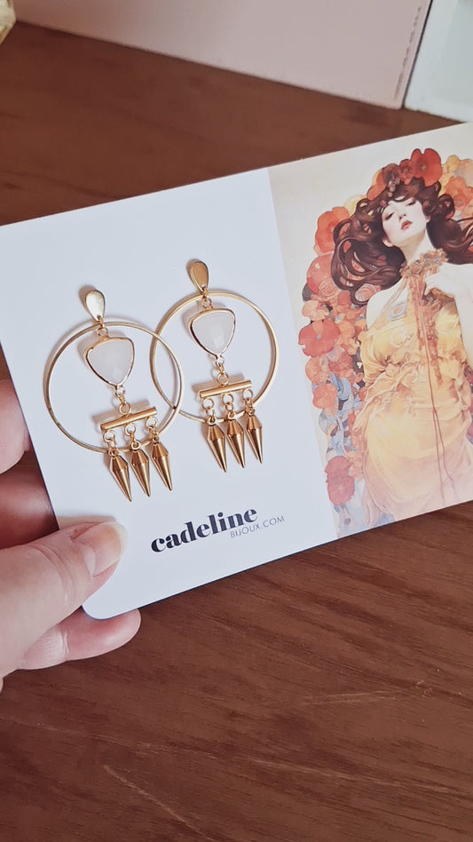 Des boucles en acier inoxydable doré (idéales pour les oreilles délicates) et...